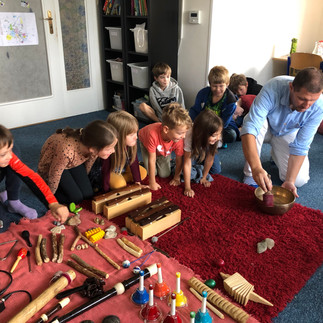 19.9.2024 k nám do školy přijeli tři lektoři v rámci programu Hudbou k sobě, který vede Ondřej Tichý. Mohli jsme si vyzkoušet různé hudební nástroje a zazpívat písničky.
